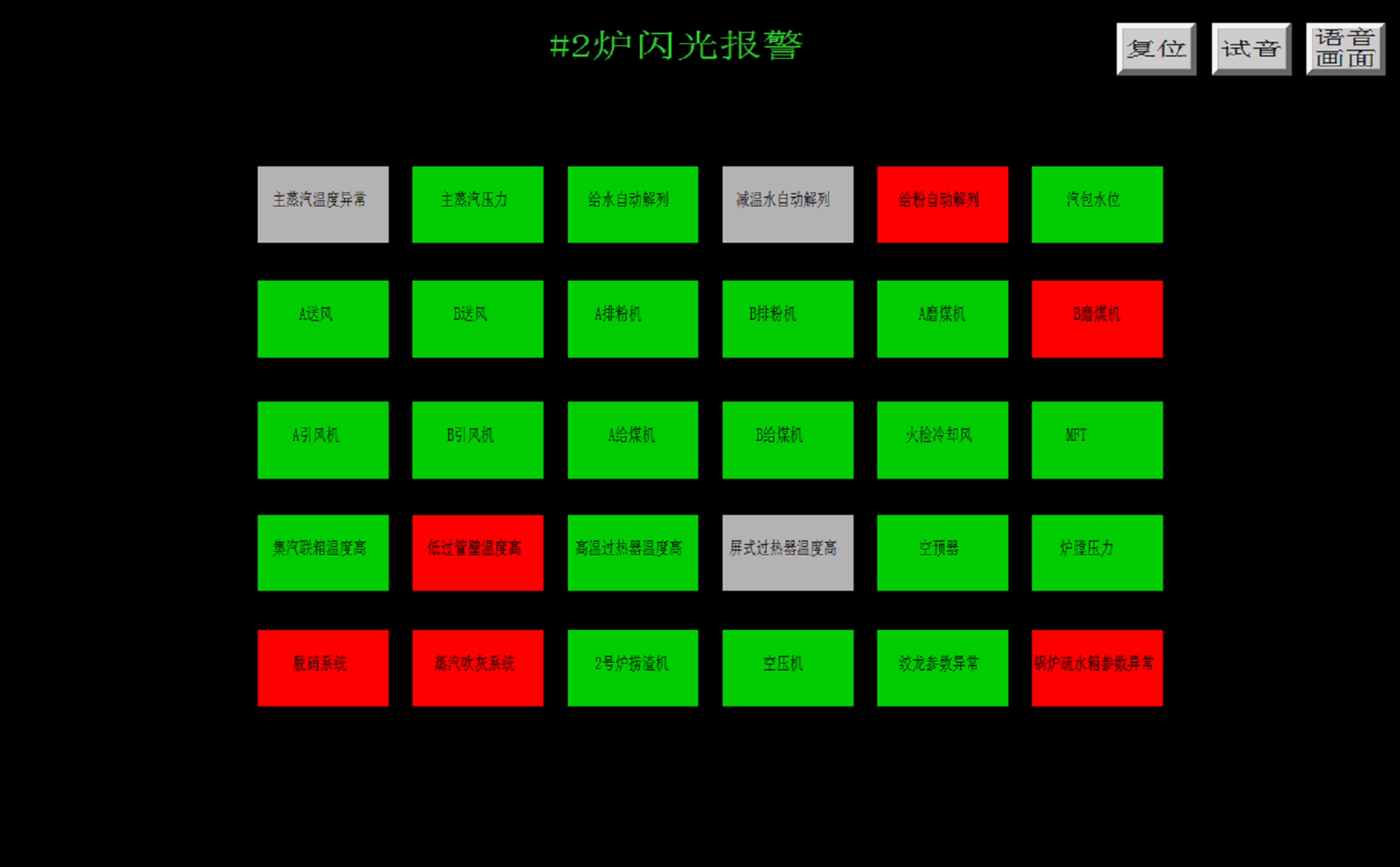 要点: 1.语音画面要存在后台但不能最小化。 2.每日接班后对语音报警进行试音,确保语音报警正常。 3.红色代表参数栏内存在参数异常,自动解除。绿色代表参数栏内参数正常。