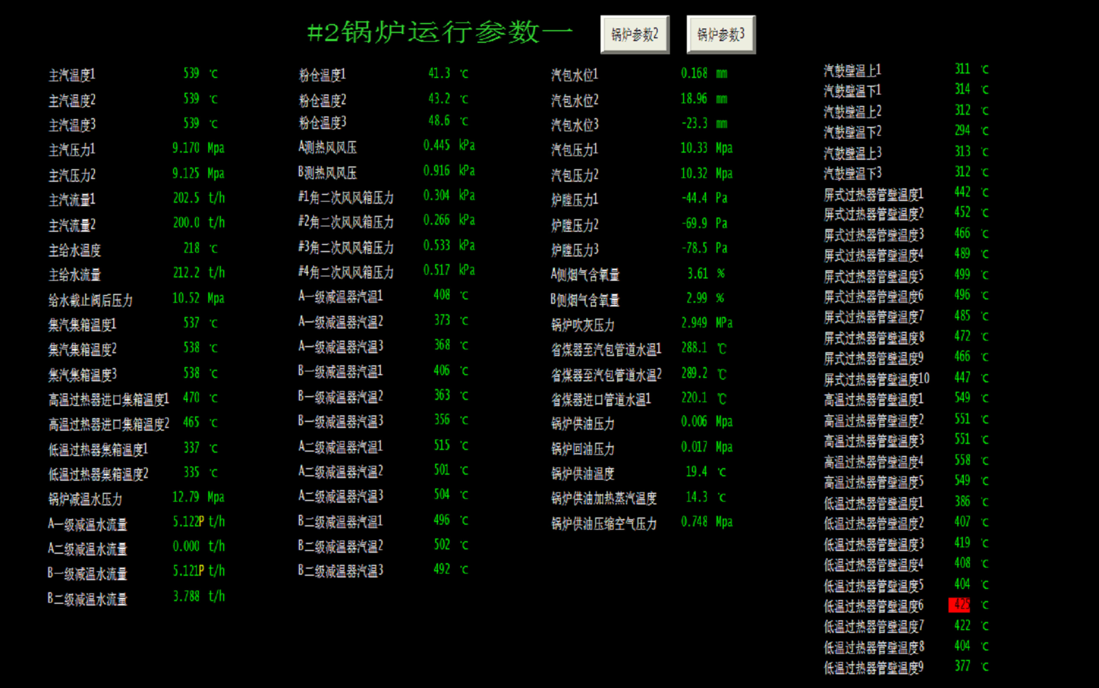 此页显示的是各系统主要参数多个测点的数据。各参数意义已在各系统内均有说明,在此不再赘述。关注各参数变化情况,熟知各参数规定范围,发现异常需及时分析处理,确保机组安全稳定运行。