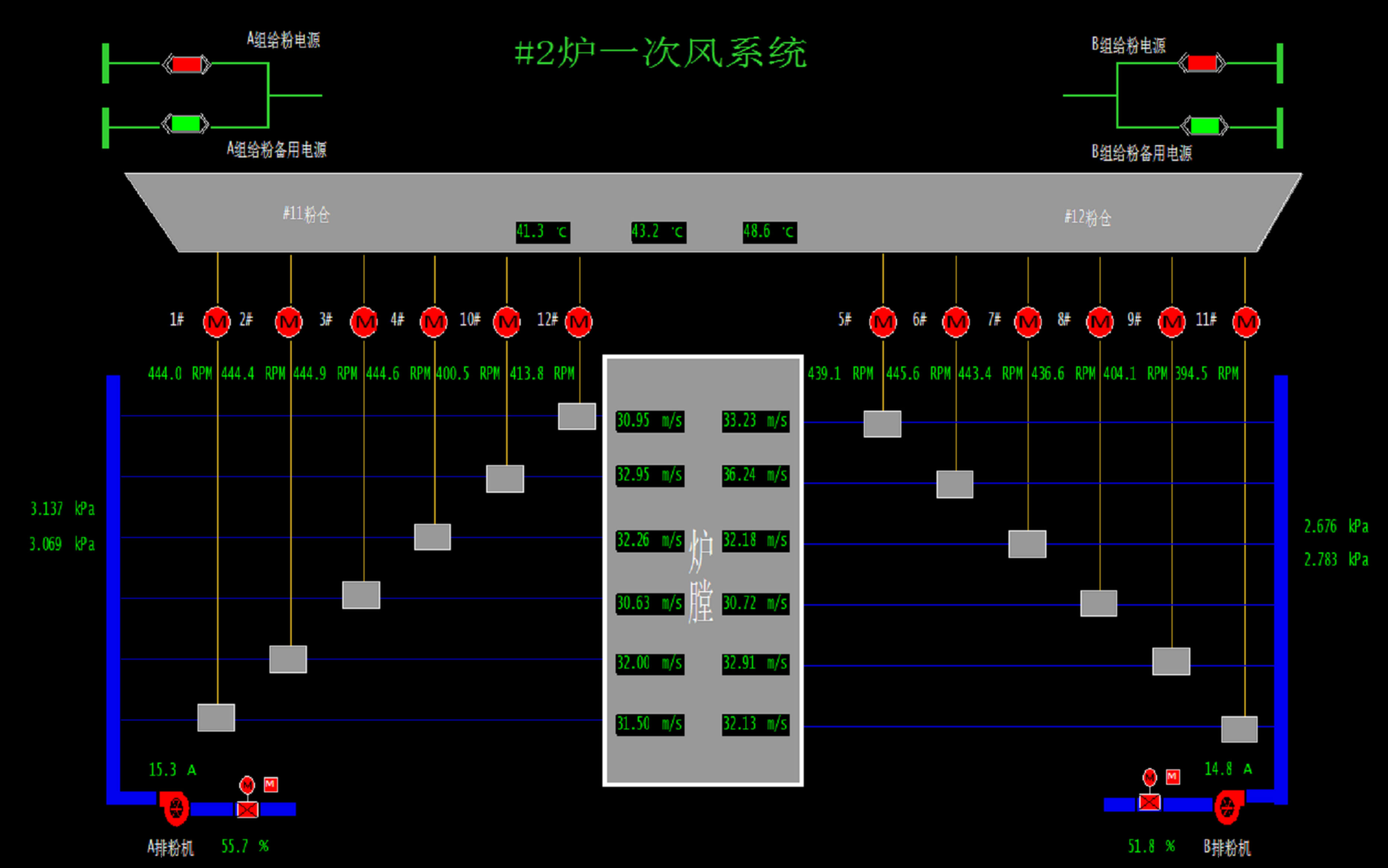 根据给粉机转速对应风速及排粉机出口风压关系,可以简单判断一次风管是否存在堵管情况