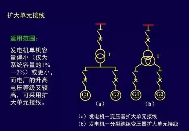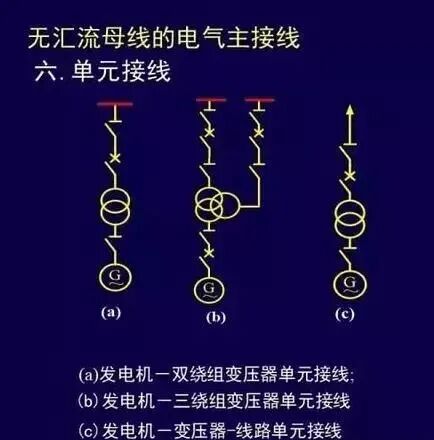 (2)地区负荷少,可不设发电机电压母线,发电机与主变压器采用单元接线或扩大单元接线,大型机组出口至变压器之间采用封闭母线