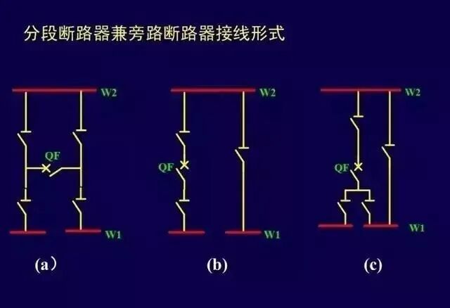 (3)110一220kV一般需设旁路母线,出线回数较少时,可采用分段断路器或母联断路器兼旁路断路器的接线。