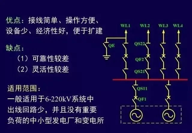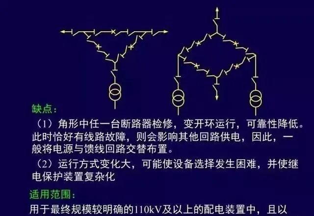 适用范围:应用于进出线较多的配电装置中,同时也被广泛应用于发电厂的发电机电压配电装置中。